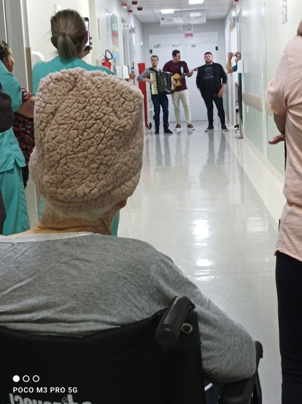No momento cultural dessa semana do o Hospital Regional Terezinha Gaio Basso - Instituto Sant, os músicos Roberto Sales, Thiago Sales e Kayan Marx animaram colaboradores, pacientes e acompanhantes com um repertório de clássicos da música sertaneja e popular brasileira.