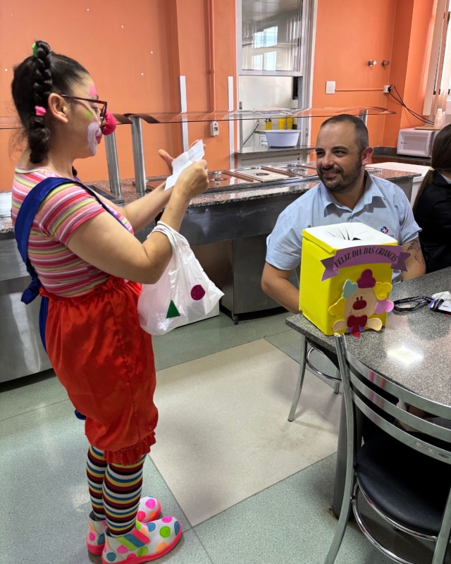 Teve decoração especial, palhaça purpurinada, brincadeiras e distribuição de doces e mimos. O objetivo, além de marcar a semana das crianças, foi de reunir as equipes em momentos de descontração, levando alegria e sorrisos.