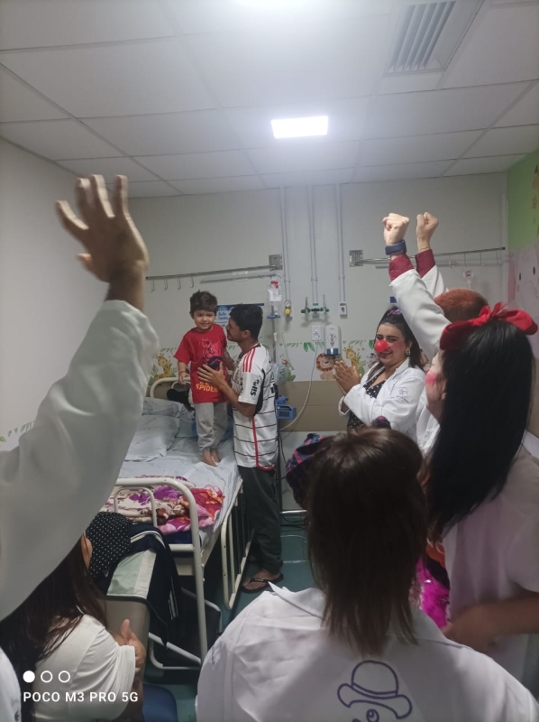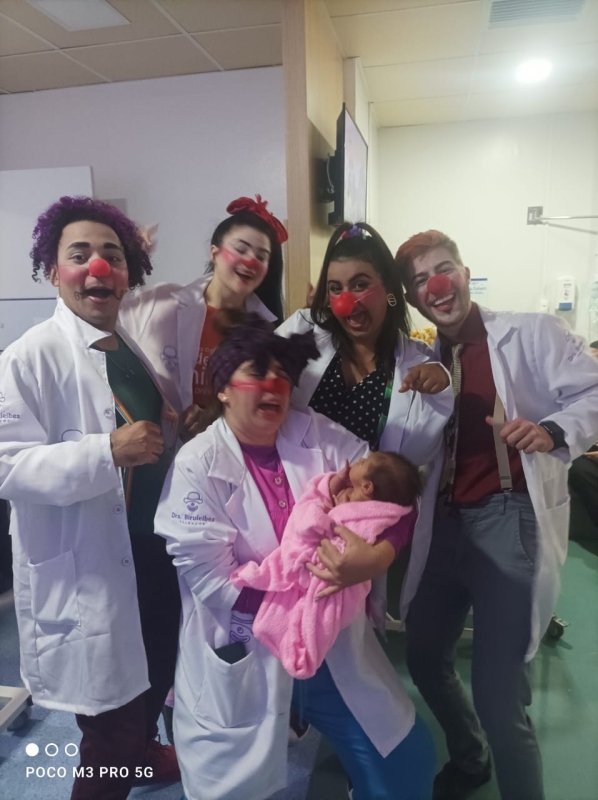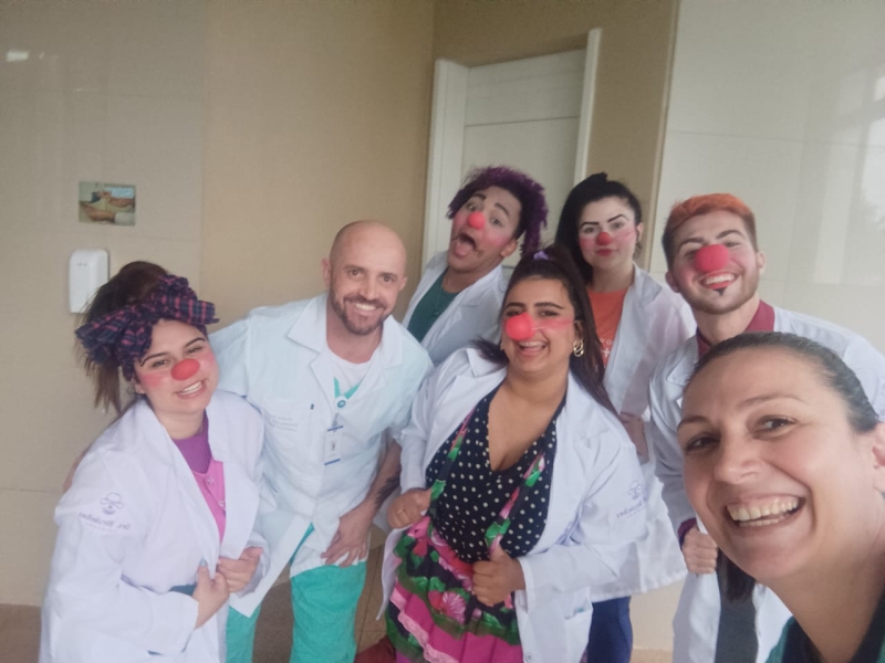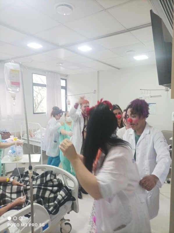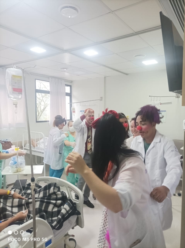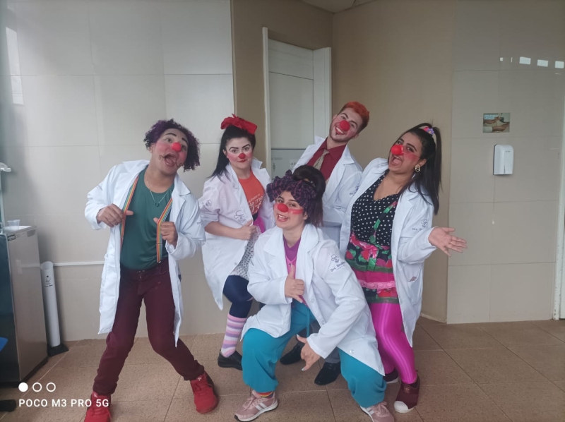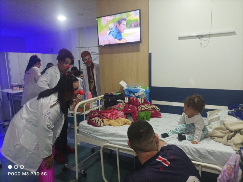 Pela primeira vez, os voluntários da alegria participaram pela primeira vez de uma ação da unidade, com visitas a pacientes, acompanhantes e equipes de colaboradores. A ação é da Comissão de Humanização, que também distribuiu brinquedos aos pequenos pacientes. O Setor de Pediatria também organizou atividades especiais para celebrar a data.
