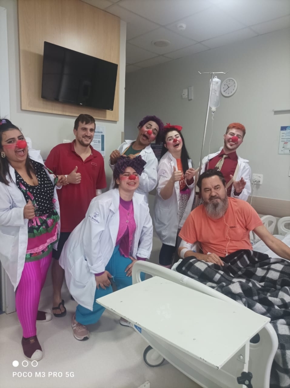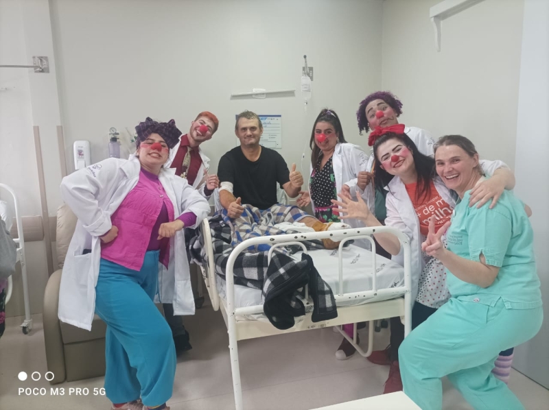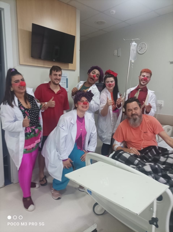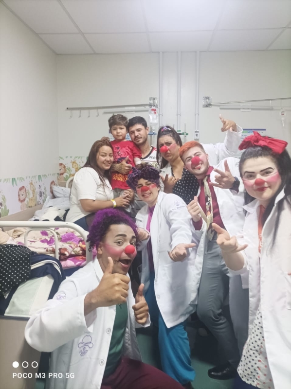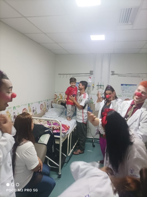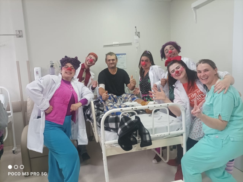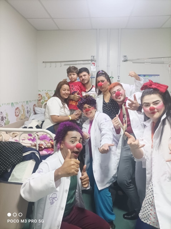Pela primeira vez, os voluntários da alegria participaram pela primeira vez de uma ação da unidade, com visitas a pacientes, acompanhantes e equipes de colaboradores. A ação é da Comissão de Humanização, que também distribuiu brinquedos aos pequenos pacientes. O Setor de Pediatria também organizou atividades especiais para celebrar a data.