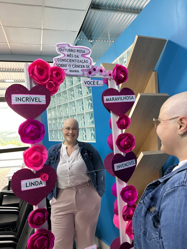 Já a Comissão de Clima Organizacional, com foco nos colaboradores, distribuiu laços cor de rosa para serem adicionados ao uniforme durante o mês e divulgou informações de conscientização à campanha.