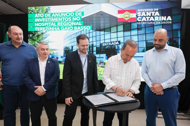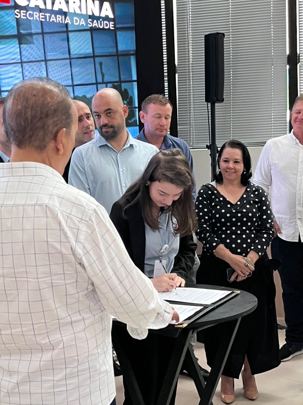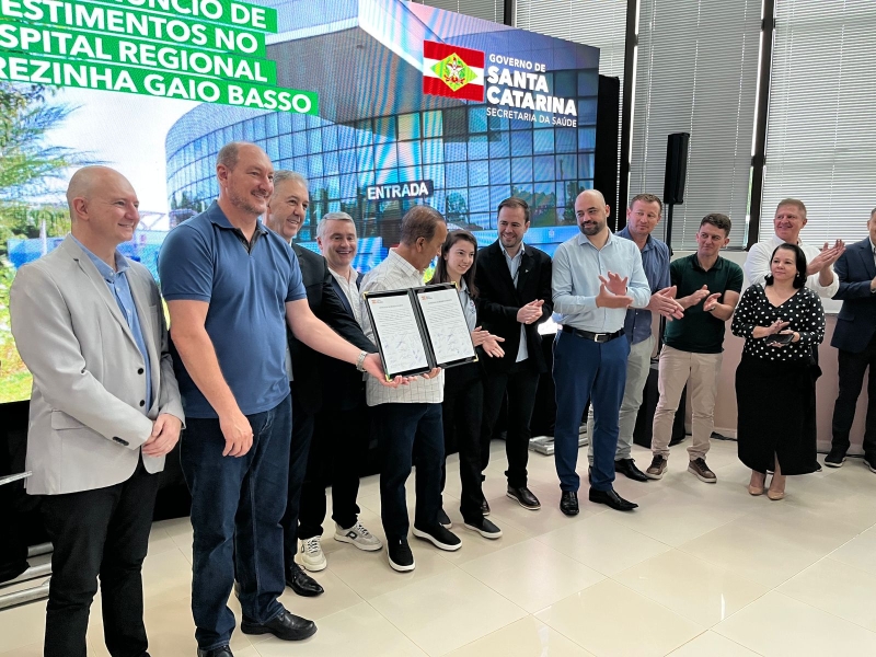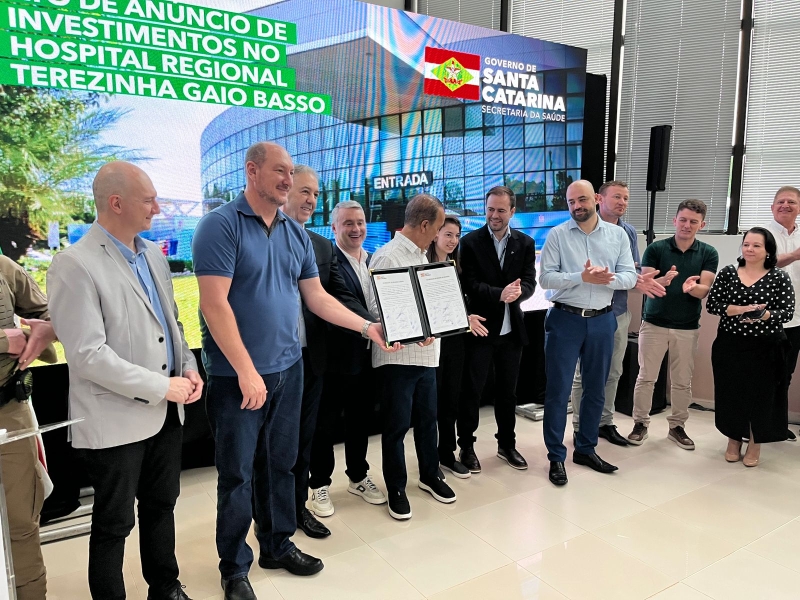 Um momento histórico para o Hospital Regional Terezinha Gaio Basso, administrado pelo Instituto Santé. Prestes a comemorar 15 anos da inauguração, o Governador de Santa Catarina, Jorginho Mello, esteve na unidade nesta sexta-feira (12) para o repasse de recursos para a obra de ampliação.