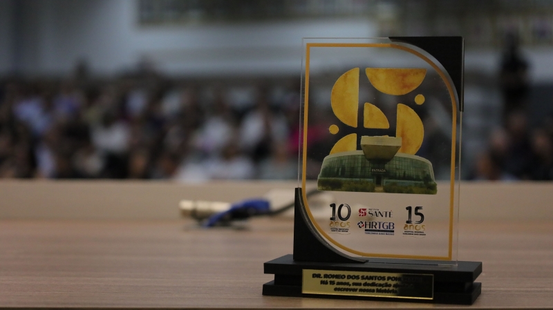 Foram entregues troféus comemorativos aos 29 colaboradores que 2026 completam 15 anos de atuação, todos contratados no primeiro ano de funcionamento do HRTGB, e aos 15 médicos que compõem o quadro clínico desde a fundação.